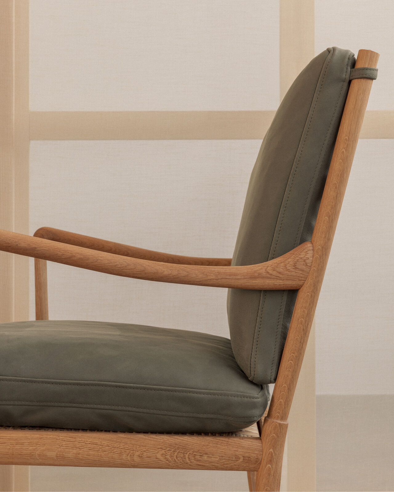 Som minimalist hadde Wanscher en forkjærlighet for slanke og raffinerte former. Til tross for stolens slanke dimensjoner er den ekstremt stabil, takket være nøye planlagt forsterkning i konstruksjonen. De sofistikerte, lett buede armlenene stiger elegant opp før de bøyer seg ned – et karakteristisk Wanscher-trekk. Stolens for- og bakben i rundstokke gir både styrke og estetisk finesse, der bakbenene er svakt utadbuede for ekstra stabilitet.