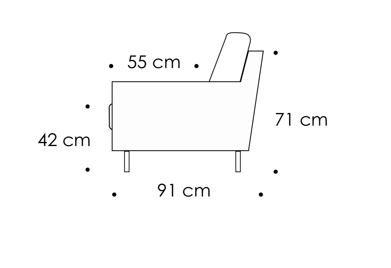 Total dybde (ramme): 91 cm · Sittehøyde: 55 cm