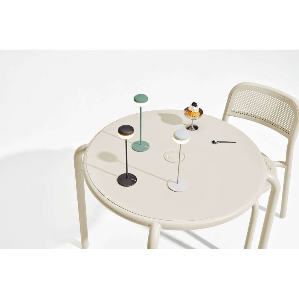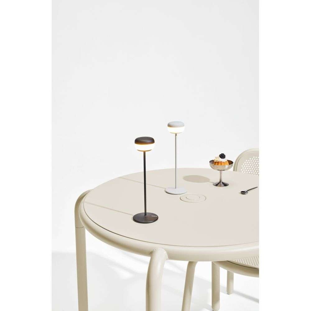 Den lille bordlampen har et relativt minimalistisk design med en rund form og et vakkert samspill mellom slanke og voluminøse former. Lampehodet på toppen omslutter den innebygde LED-lyskilden, slik at lyset skinner indirekte til alle sider i et mykt og jevnt skjær. Lampen er utstyrt med en innebygd dimming som gjør det mulig å justere lysstyrken trinnløst. Ved maksimal lysstyrke kan lampen lyse i opptil 8 timer mellom hver lading. Laderen er inkludert i boksen.
