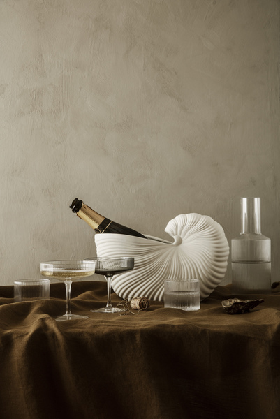 Ripple champagneglass fra Ferm Living. Disse herlige glassene har en klassisk karakter, perfekt for alle typer bobler. Laget av vakkert blåst glass som gir et dynamisk og energifullt uttrykk til glassene.
