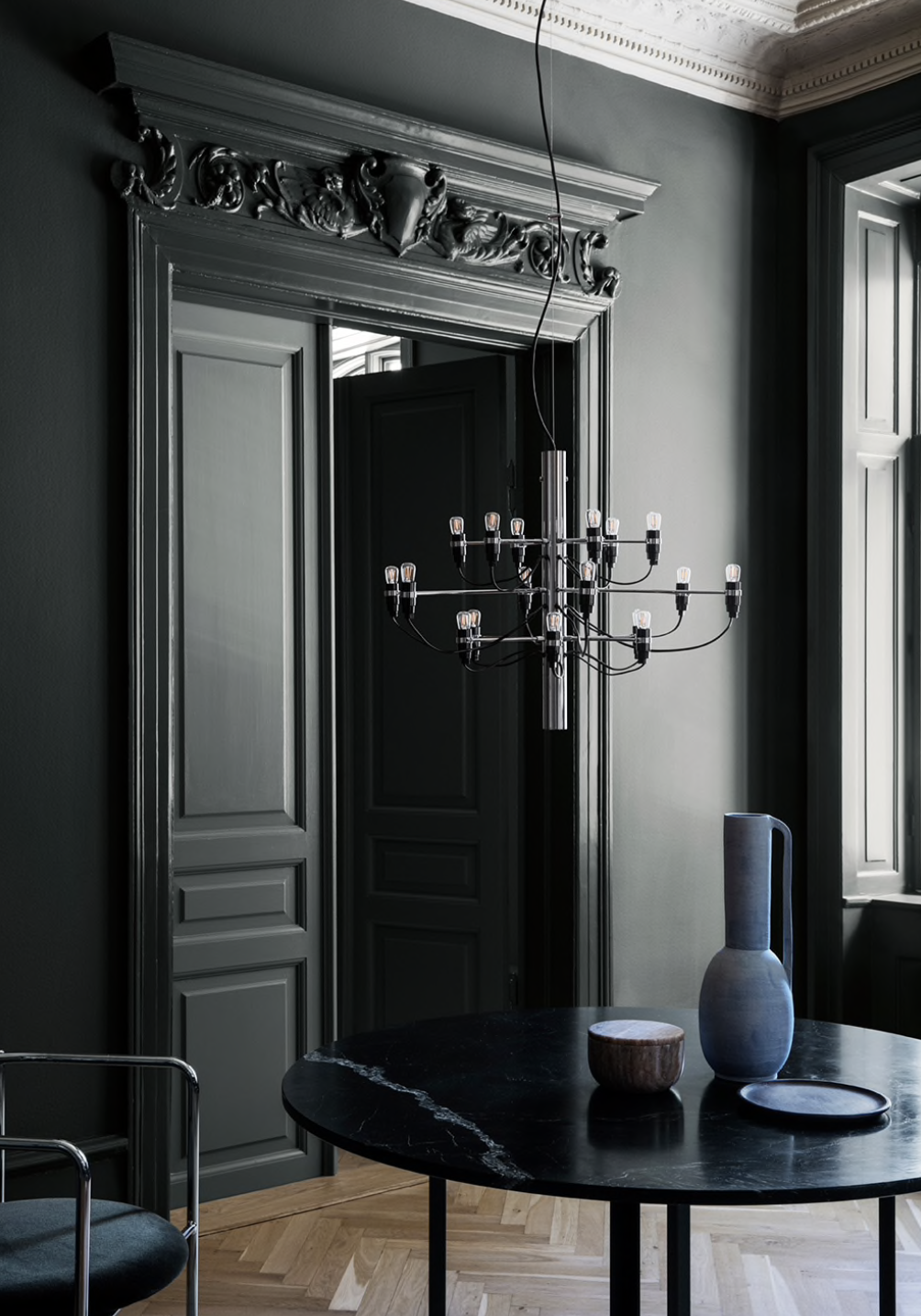 Lysekronen til Gino Sarfatti fra 1958 som er like stilren i utrykket idag som den gang.