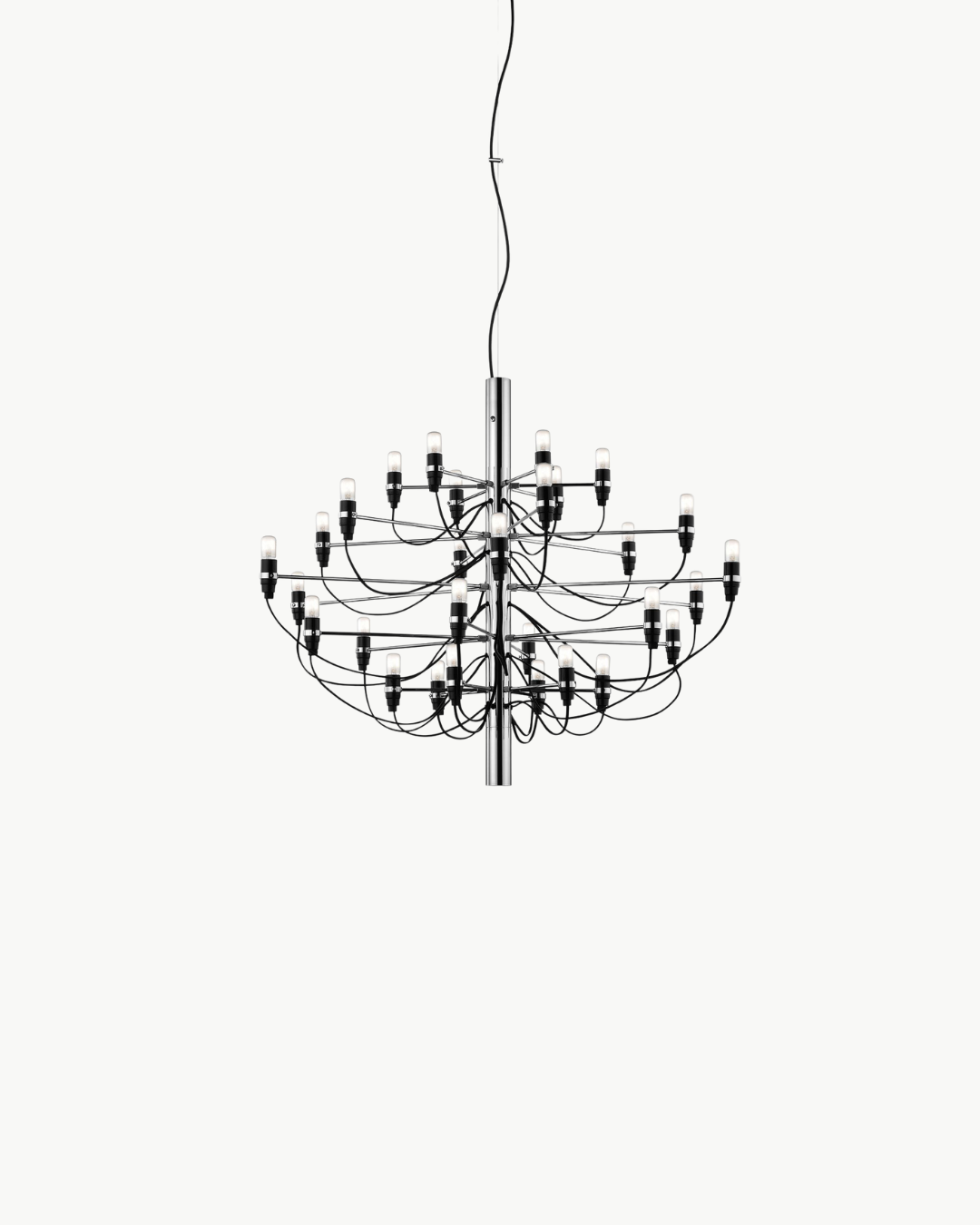 Flos 2097/30 er en ikonisk lysekrone og et mesterverk innen italiensk belysningsdesign. Opprinnelig designet av Gino Sarfatti i 1958, kombinerer lampen det klassiske uttrykket fra en tradisjonell lysekrone med et moderne, industrielt formspråk.