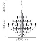 Finish: Krommet stål Mål: Ø100 H88 cm. Leveres med 2,8 meter ledning. Max 50xMAX15W e14 alt. LED