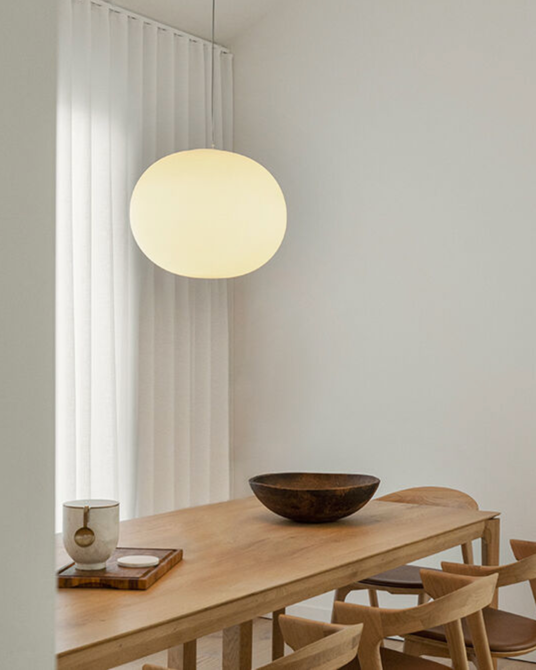 Glo-Ball Suspension er ideell som taklampe over spisebord, kjøkkenøy, i stue eller entré, og gir rommet en sofistikert, men samtidig komfortabel belysning.