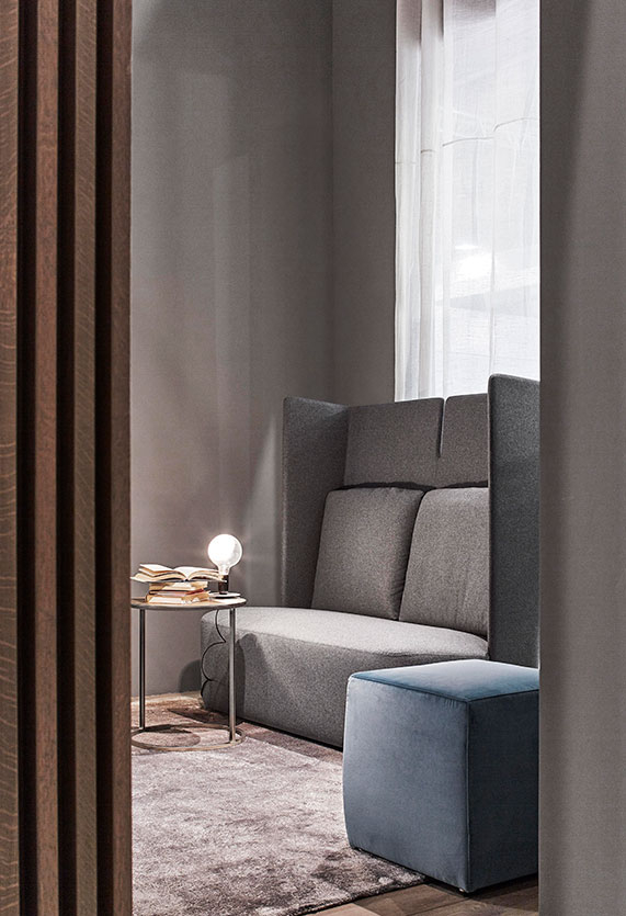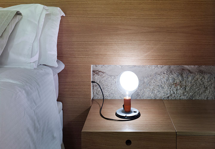 Lampadina designet av Achille Castiglioni , 1972 En bordlampe unnfanget av Achille Castiglioni for åpningen av Flos showroom i Torino i 1972 , gjenspeiler Lampadina sitt navn i sin geniale ryddighet.