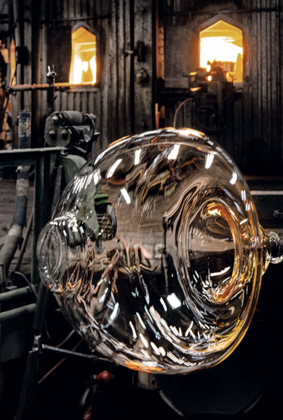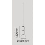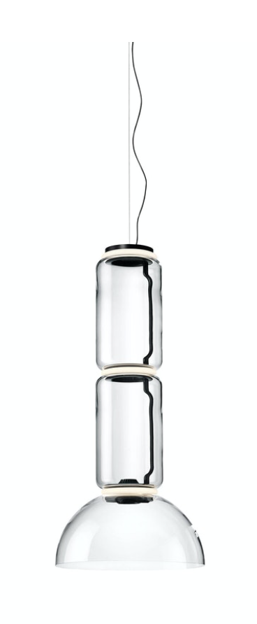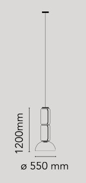 Hengelamper bestående av sammenkoblede glassmoduler som når en lengde på 3,2 mt. (126,77 «) med 4 mt (157,48») hengende strømkabel. Sylindrisk og halvkuleformet, gjennomsiktig blåst glassstruktur, suspendert ringstøpsel av støpt aluminium, hydroformet stål innvendig sidearm og sprøytestøpt optisk opal silikon ytre ringdiffusorer Strømforsyningsenheten i takrosen kan brukes som dimmer for å justere lysintensiteten med 10% til 100% i begge retninger ved hjelp av 0-10 / 1-10V, PUSH, DALI-kontrollen.