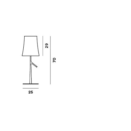 En nyfortolkning av den klassiske lampeskjermslampen med en moderne vri, diffuserer Birdie bordlampe direkte lys nedover og limmet lys inn i omgivelsene. Turtemperen på / av-mekanismen er utformet som en gren klar for en fugl å rooste, derav navnet.