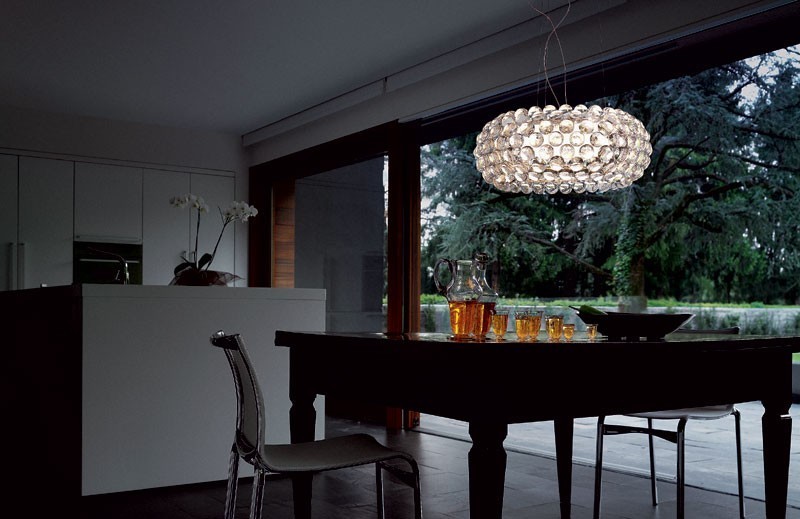 Caboche, designet av Patricia Urquiola, er en serie dekorative lamper bestående av kuler av polymetylmetacrylate. En indre-skjerm i opalisert sandblåst glass garanterer maksimal utbredelse av lys og forhindrer blending.