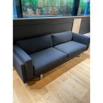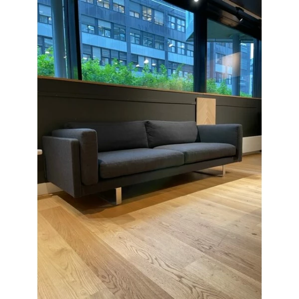 Det mørke grå trekket gir sofaen et elegant og sofistikert uttrykk, mens understellet i stål (Mejer) tilfører et lett og moderne preg. Resultatet er en sofa som passer perfekt inn i både private hjem og offentlige miljøer.