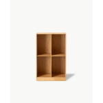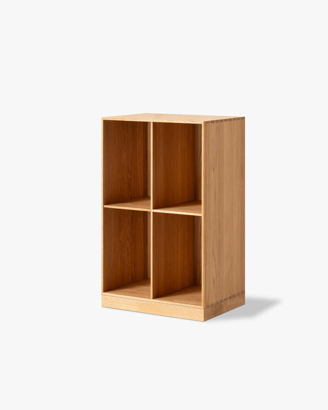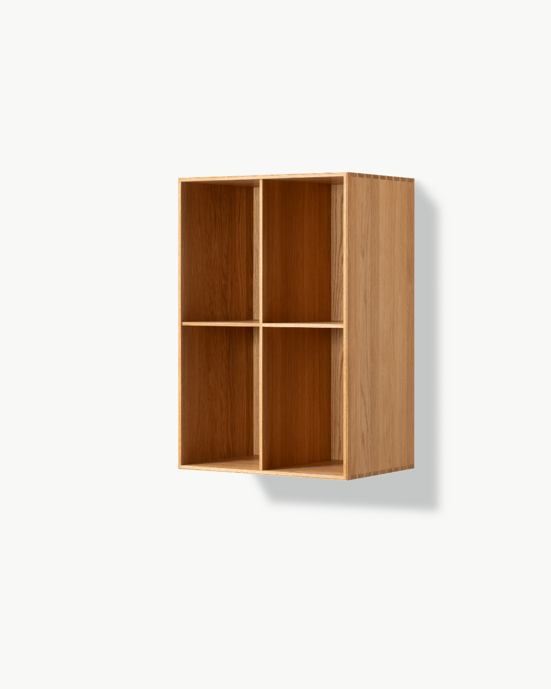 Reolen er laget i heltre og konstruert med tradisjonelle svalehaleskjøter, som gir både styrke og et raffinert uttrykk. Bakplaten er i finér, noe som skaper en stabil og elegant helhet. MK67 kan leveres enten med sokkel eller for veggmontering, slik at den enkelt kan tilpasses ulike rom og behov – perfekt som bokhylle i stue, kontor eller bibliotek.