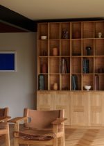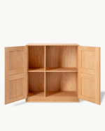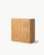 Skapet er fremstilt i heltre eik og bygget med klassiske snekkerdetaljer som gjenspeiler Kochs presise tilnærming til design, ærlige materialbruk og tidløse formspråk. Resultatet er et møbel som både er praktisk i bruk og estetisk varig.