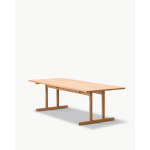 Den tilbaketrukne benkonstruksjonen – uten ben plassert helt ute i hjørnene – gir god benplass og gjør det enkelt å kombinere bordet med ulike typer spisestoler. Mogensen 6386 spisebord kan leveres med ileggsplater, noe som gjør det fleksibelt både til hverdags og når du får gjester.