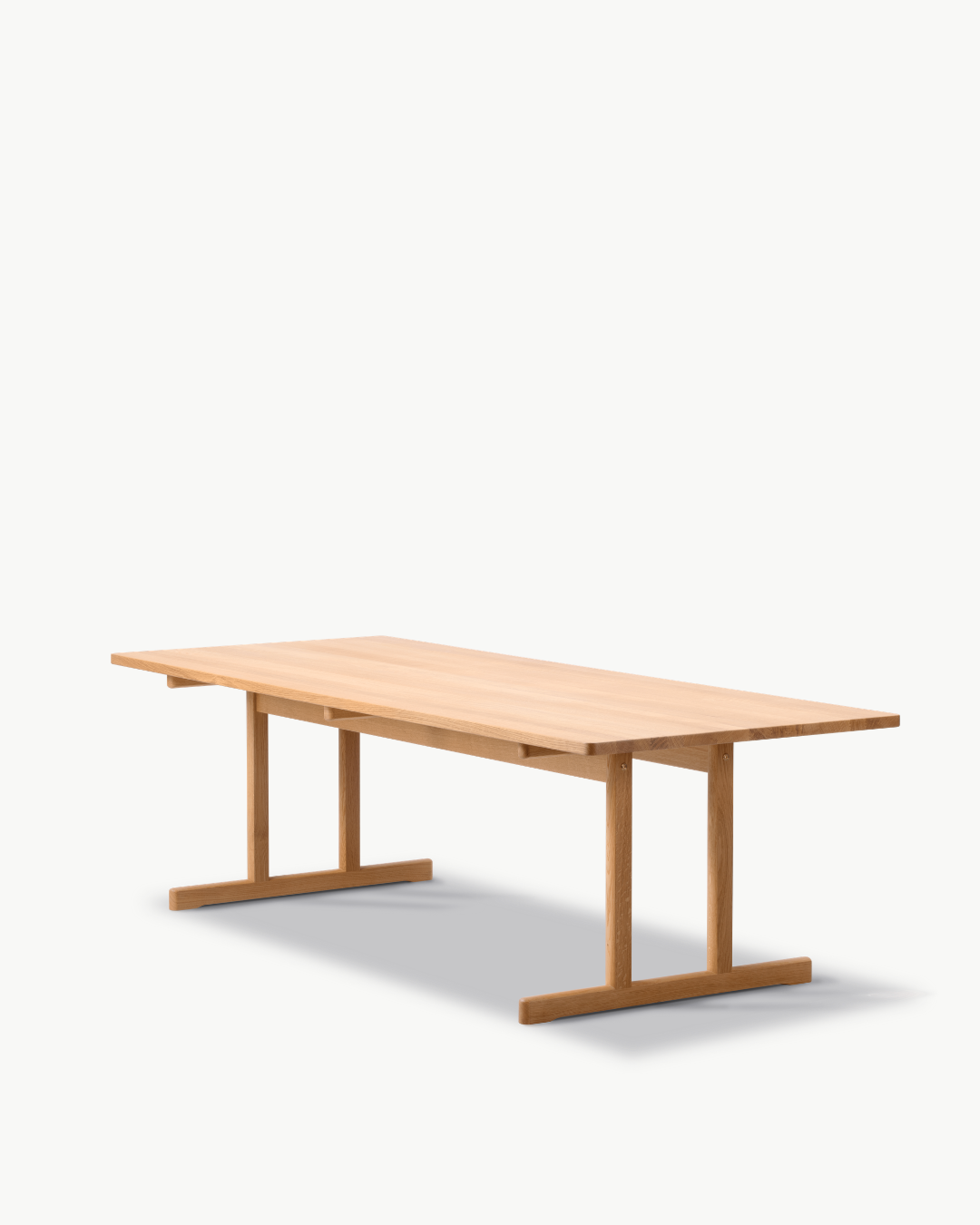 Sammenlignet med Mogensens tidligere bord har 6386 større dimensjoner og en kraftigere bordplate. Resultatet er et majestetisk og eksklusivt uttrykk, ytterligere fremhevet av nøye utvalgt kvartskåret eik. Denne spesielle skjæringen gir en vakker og levende årestruktur, samtidig som den sikrer ekstra stabilitet og holdbarhet.