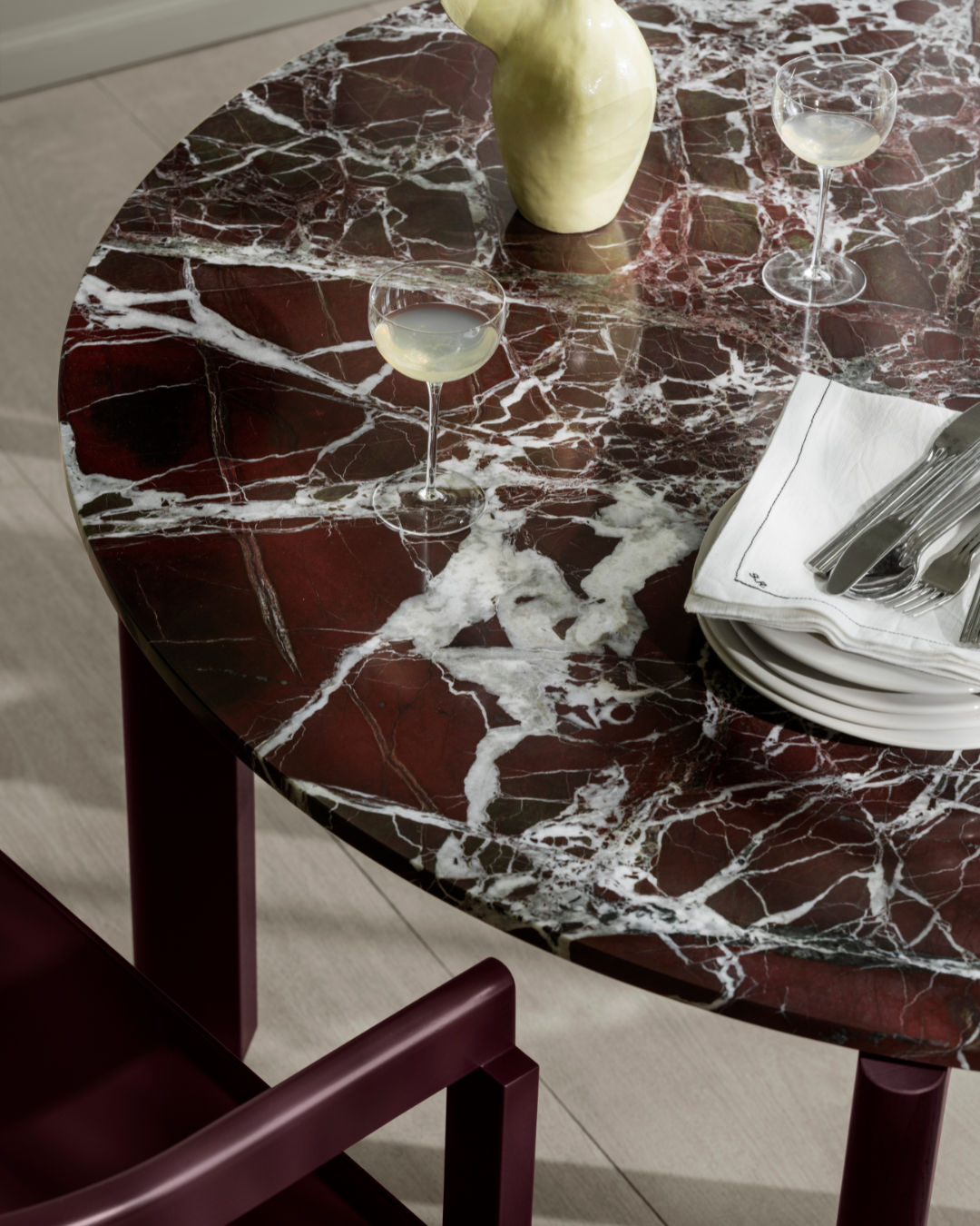 After™-bordet uttrykker en stille styrke med sine rene linjer og arkitektoniske klarhet. Bordet er laget i solid ask, med bordplate i enten heltre ask eller polert rød-hvit marmor som tilfører ekstra dybde og materialrikdom.
