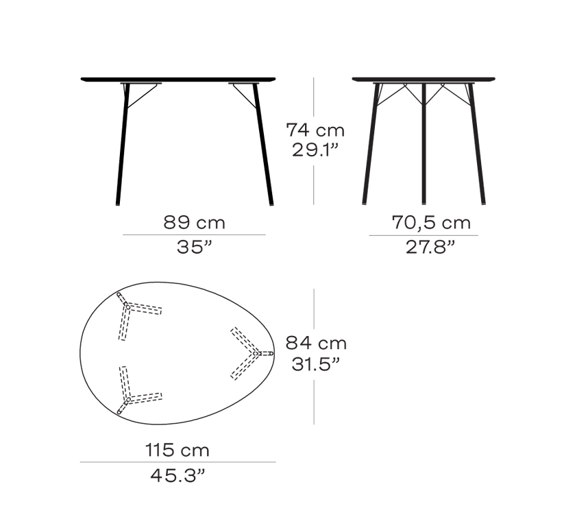 Det elegante og allsidige designet gjør bordet like velegnet som spisebord i en uformell og innbydende spisesone, som møtebord på kontoret eller som et sofistikert skrivebord i hjemmekontoret. Den elliptiske formen skaper en intim atmosfære hvor alle rundt bordet inkluderes, samtidig som den gir et moderne og lett uttrykk.