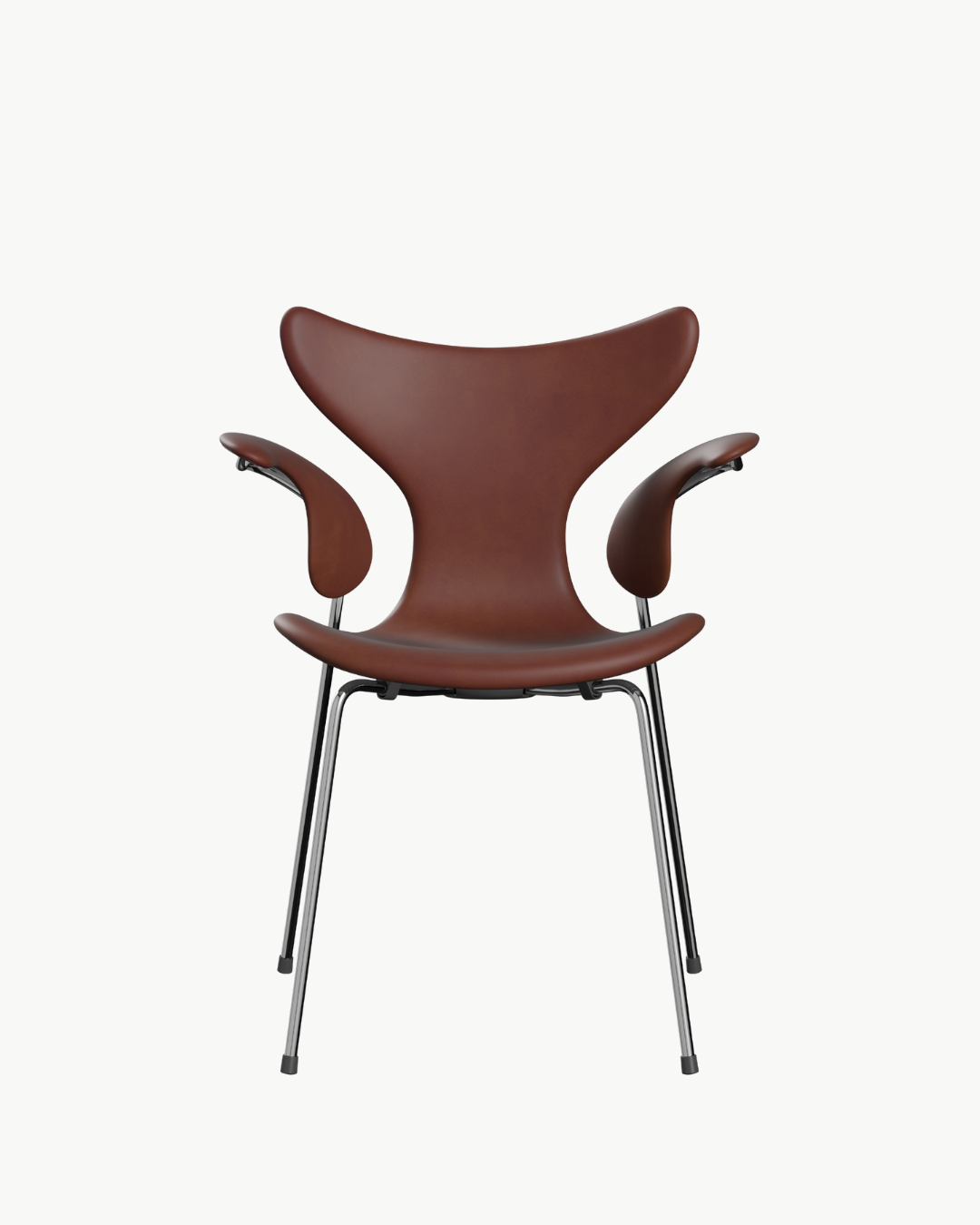 Lily 3208 regnes som et høydepunkt i Arne Jacobsens eksperimentering med kryssfiner og formpresset tre. Resultatet er en stol som kombinerer skulpturell eleganse med ergonomisk komfort – like aktuell rundt spisebordet som i møte- og konferanserom.