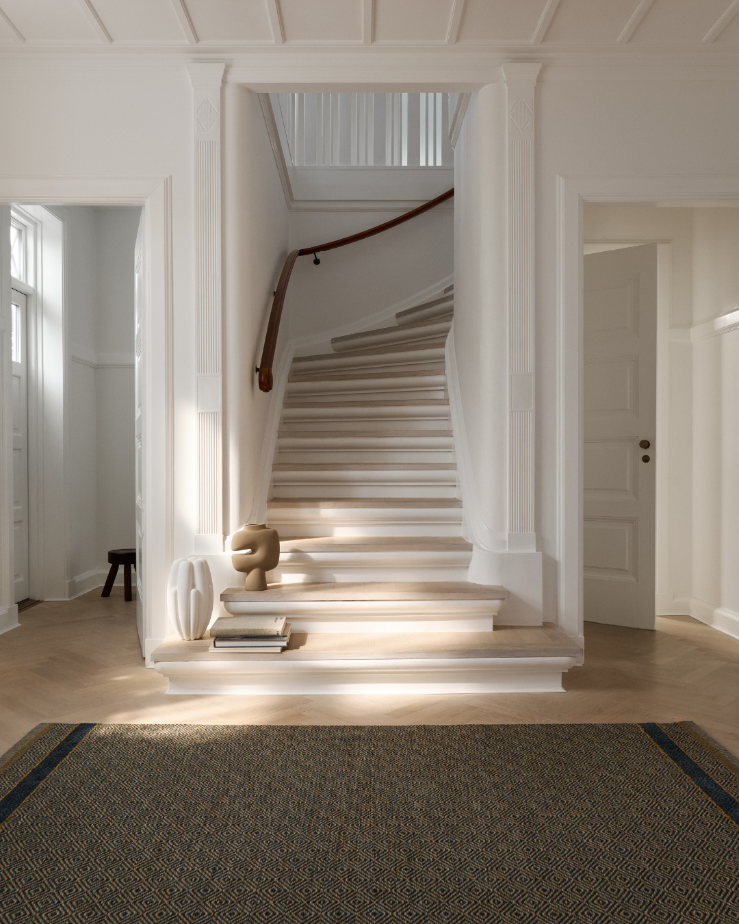 Med sitt ikoniske gåseøye-mønster og dype tekstur, passer teppet like godt i moderne hjem som i klassiske interiører, og fungerer utmerket i alt fra stuer og soverom til kontorer og offentlige rom.