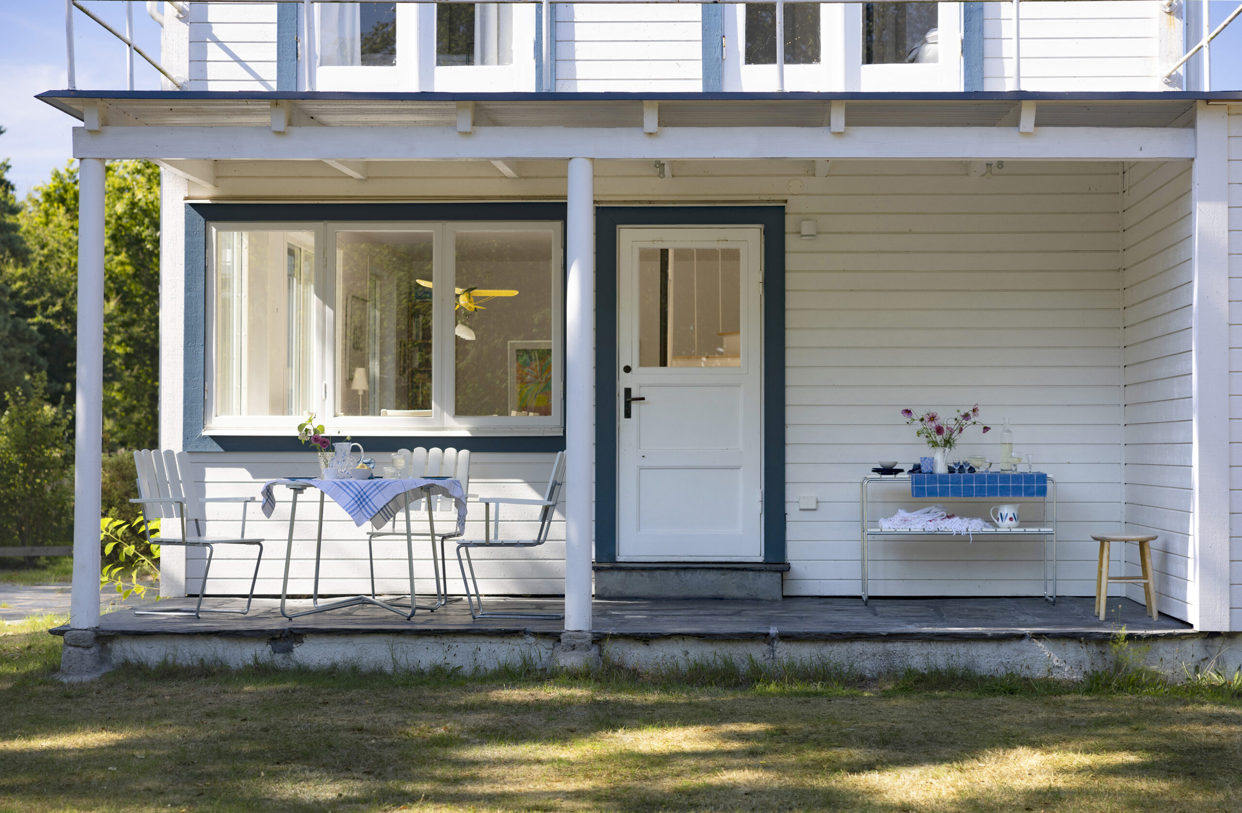 Lakkerte tredeler tåler flere årstider utendørs, vask regelmessig med såpe, vann og svamp eller klut.