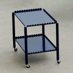 Designet av den belgiske duoen Muller Van Severen, er Arcs Trolley en funksjonell og dekorativ vogn innkapslet i en enhetlig kjede av vertikale buer. Et lite møbel med en sterk tilstedeværelse, vognen kombinerer industrielle teknikker med poetiske linjer for å skape et særegent og skulpturelt uttrykk. Den elegante, utformede rammen støtter to eller tre lag, med slanke ben montert på hjul for enkel manøvrering. Laget i pulverlakkert stål i forskjellige fargealternativer, passer vognen til de fleste rom og bruksområder i hjemmet, fra utstilling og oppbevaring av gjenstander i stuen til ekstra hyller på kjøkkenet eller som nattbord.