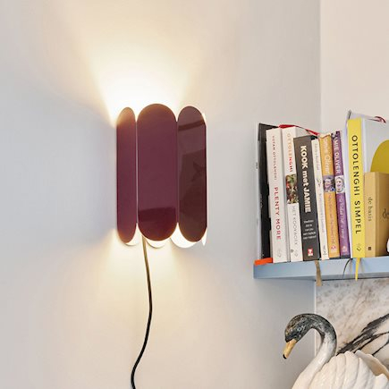 The Arcs Wall Lamp er en del av en serie buede design laget for HAY av den belgiske duoen Muller Van Severen. Lampen er laget av en kontinuerlig kjede av buede buer som skaper en elegant, skallet silhuett, og gir et mykt, opp og ned lys som leker med former og skygger. Lampen er enkel å montere og er tilgjengelig i to veggvarianter – som gir fleksible installasjonsalternativer med et utvalg av integrerte og uavhengige strømledninger. Arcs er laget i solid stål og er tilgjengelig i flere forskjellige farger eller med speiloverflate. De forskjellige monteringsløsningene gir lampen en allsidig kvalitet, noe som gjør den egnet for korridorer og store rom, samt en nattlampe eller i små hjørner.