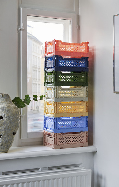 Colour Crate fra HAY er en praktisk serie i fargerike og multifunksjonelle oppbevarings bokser.