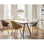 About A Chair AAC21 har en svingbar base i stål, og gir et mer formelt uttrykk enn sine trebente kolleger fra serien. Det særegne buede skallet gir en myk, enhetlig silhuett og ben som vifter ut fra den sentrerte basen. Den svingbare basen i støpt aluminium er tilgjengelig i polerte eller pulverlakkerte overflater, og polypropylenskallet kommer i forskjellige farger og polstringsmuligheter, noe som gir en rekke designkombinasjoner som gjør denne serien så allsidig.