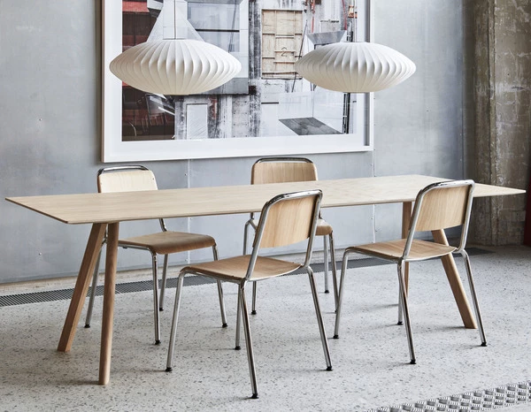 En del av Copenhague-serien designet av Ronan og Erwan Bouroullec, deler CPH 30 de samme karakteristiske vinklede benene og sterke identiteten som er i samsvar med resten av serien, mens denne varianten har en rektangulær bordplate. Den er tilgjengelig i forskjellige størrelser, med bordplater og rammer i en rekke tretyper og materialer, og gir muligheten til å velge matchende eller kontrasterende kombinasjoner. CPH 30s allsidighet og ryddige design gjør den ideell for bruk som skrivebord, konferansebord eller spisebord i kontorsammenheng eller en privat setting.
