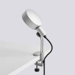 Cupola Clip Lamp er en justerbar lampe som utforsker mulighetene for å gi optimal bevegelse ved hjelp av minimale mekanismer. Det sirkulære 360° roterende hodet, svingbare festet og klemmen tilbyr en elegant, men enkel design, samtidig som den tilbyr en funksjonell og svært teknisk belysningsløsning. Laget i slitesterk aluminium med en naturlig anodisert finish, balanserer lampen et rått, industrielt uttrykk med de karakteristiske, avrundede linjene. Den fleksible lampen kan festes på hyller, skrivebord og andre overflater for å gi lokalisert, retningsbestemt lys for å passe spesifikke behov.