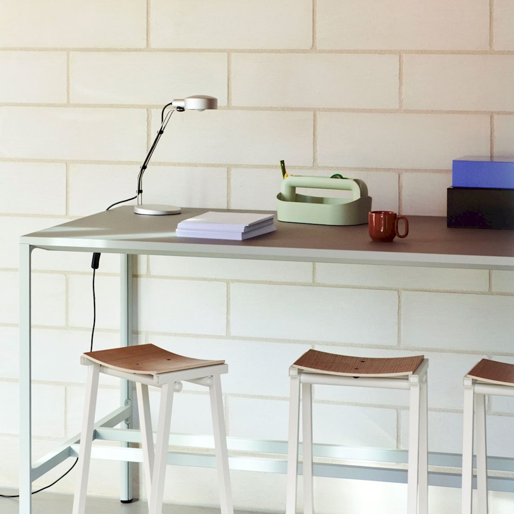 Cupola Desk Lamp er en justerbar lampe som utforsker mulighetene for å gi optimal bevegelse ved hjelp av minimale mekanismer. Det sirkulære 360° roterende hodet, det svingbare festet og den vinklede stangen tilbyr en elegant, men enkel design, samtidig som den tilbyr en funksjonell og svært teknisk belysningsløsning. Laget i slitesterk aluminium med en naturlig anodisert finish, balanserer lampen et rått, industrielt uttrykk med de karakteristiske, avrundede linjene. Den fleksible lampen kan stå fritt på skrivebord, bord og andre overflater for å gi lokalisert, retningsbestemt lys for å dekke spesifikke behov.