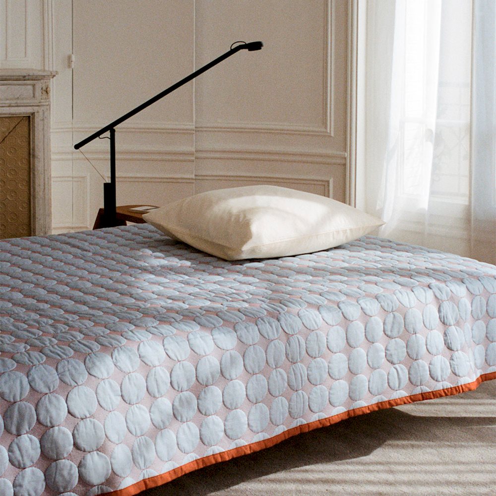 Mega Dot er et vattert sengetrekk med et tredimensjonalt sirkulært mønster som kombinerer moderne designidealer med sanselig grafisk uttrykk. Den er laget av myk og slitesterk organisk bomull, og har en tofarget design med en kontrastfarge på baksiden. Tilgjengelig i flere forskjellige farger.