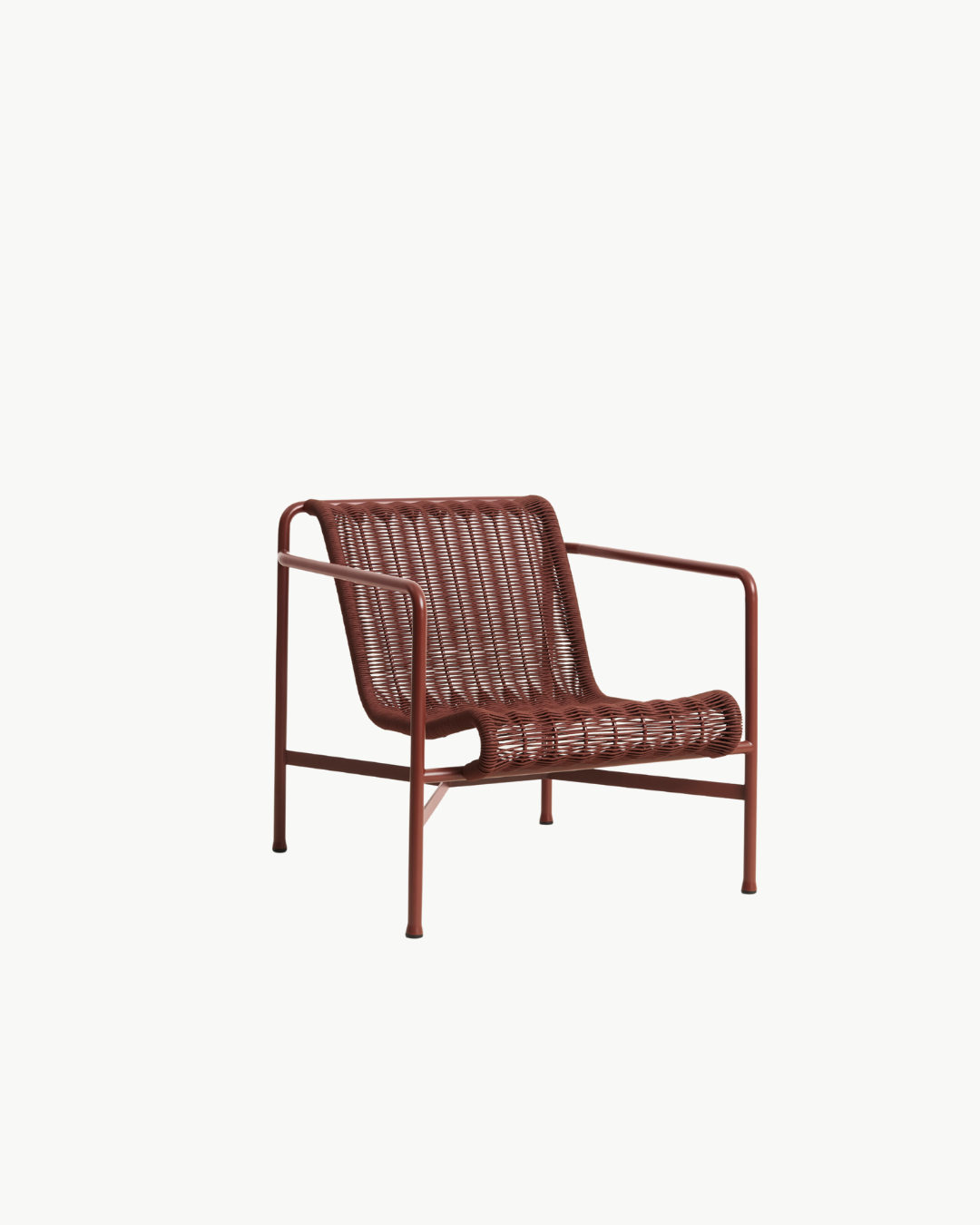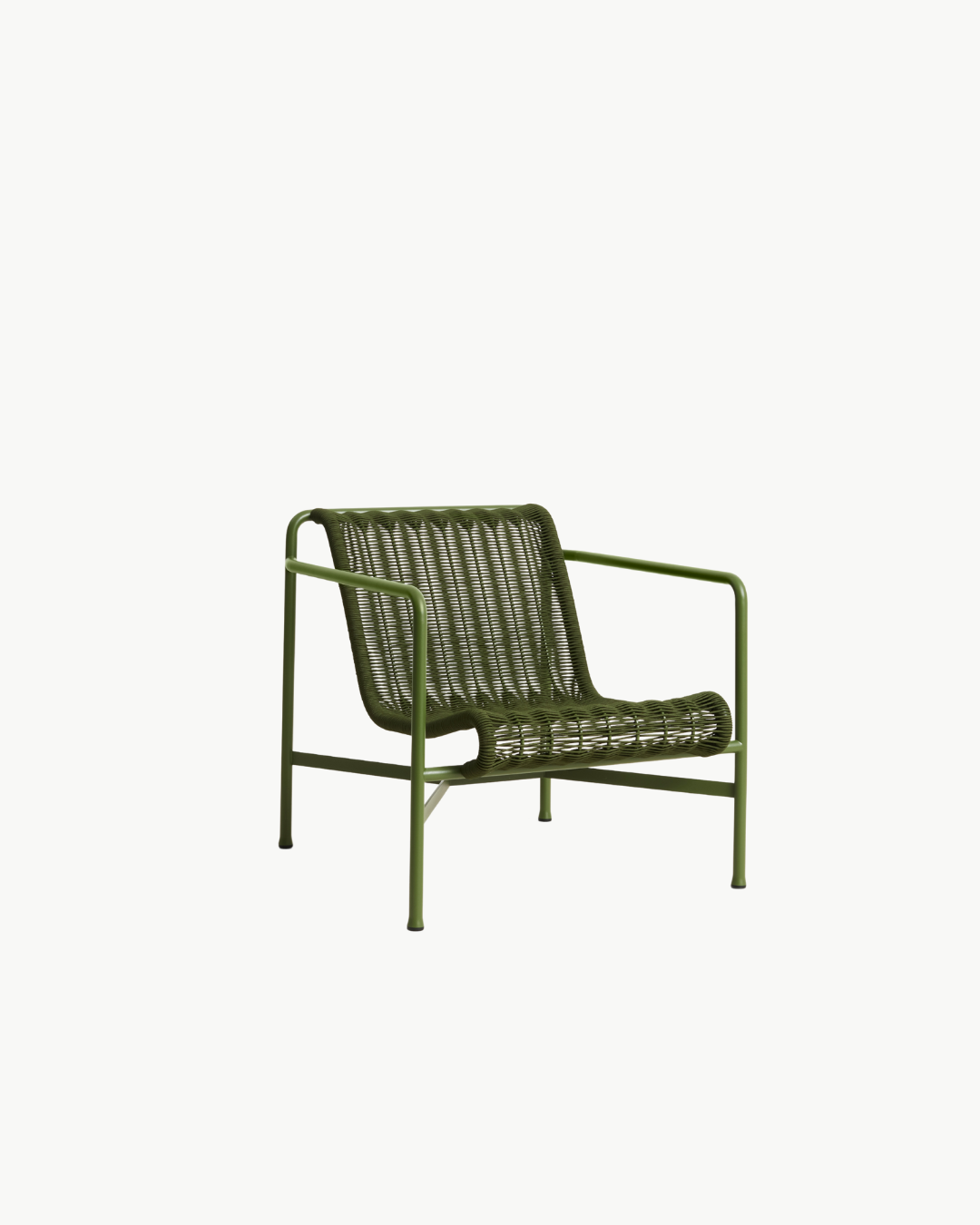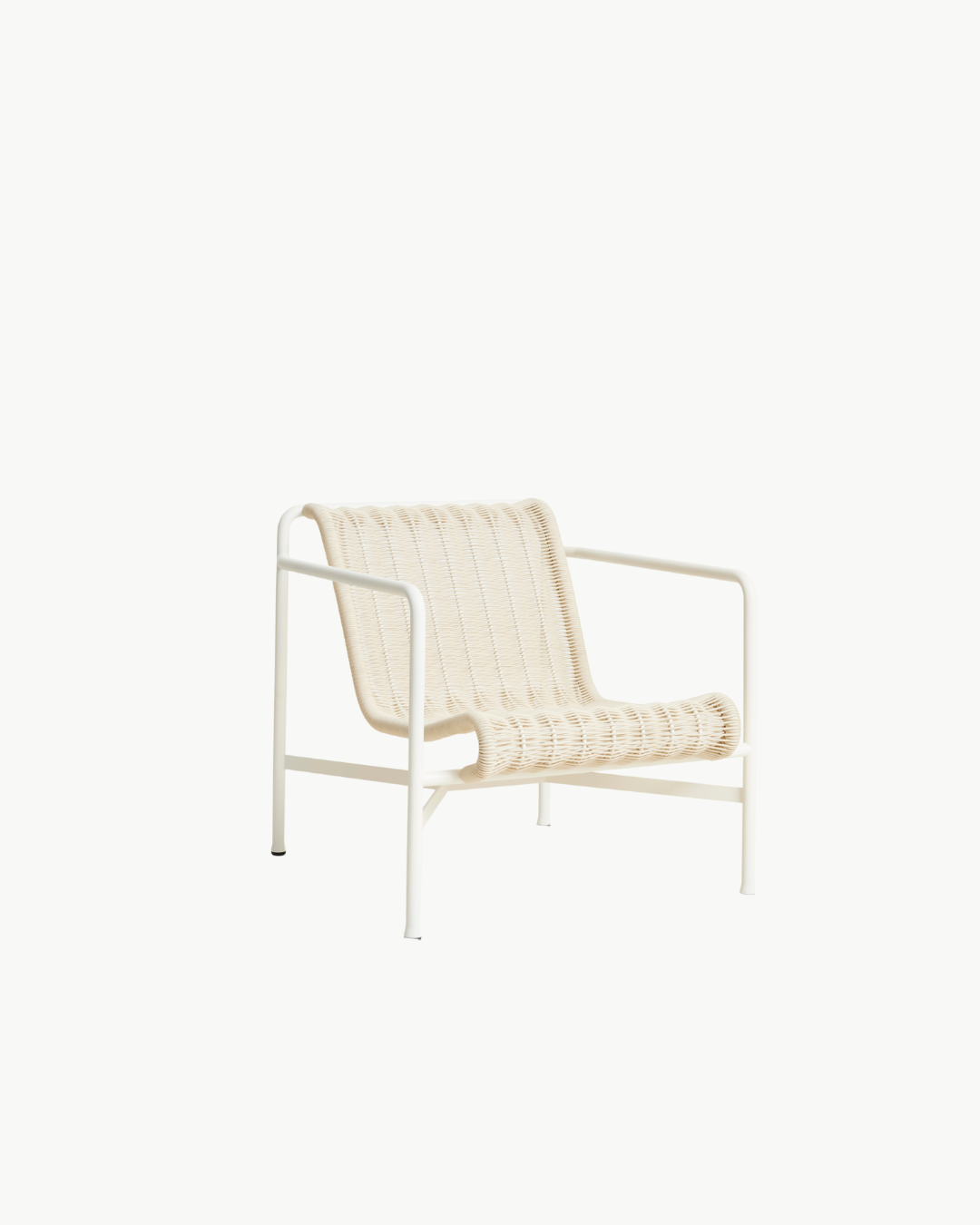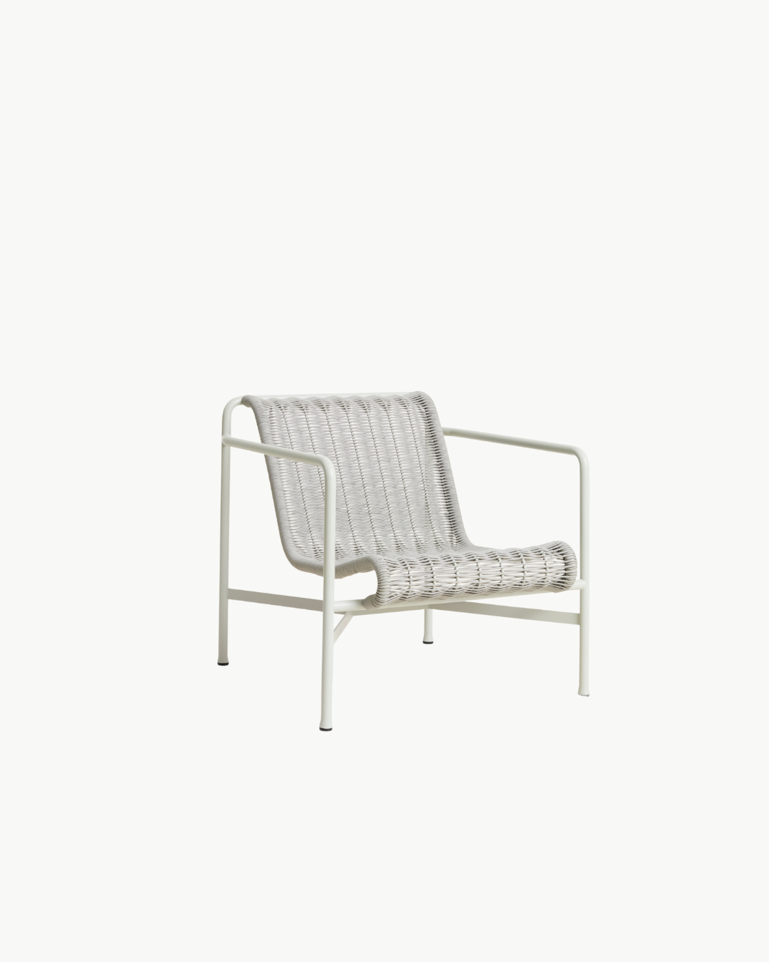 Palissade-kolleksjonen av utemøbler er forenet av sitt vanlige prinsipp om symmetrisk geometri, og er designet for å integreres uanstrengt i både naturlige og urbane omgivelser. Palissade Cord Lounge Chair Low deler samme designspråk som originalkolleksjonen, og kombinerer et mykere uttrykk med Palissades visuelle enkelhet og kjernestyrke. Resirkulert polyestersnor er håndvevd på stolens pulverlakkerte stålramme i en matchende tonefarge, og skaper et komfortabelt og slitesterkt sete. Stolens allsidige fargepalett og tidløse appell gjør den ideell for bruk i et bredt spekter av uterom, fra kafeer og restauranter til hager, terrasser og balkonger.