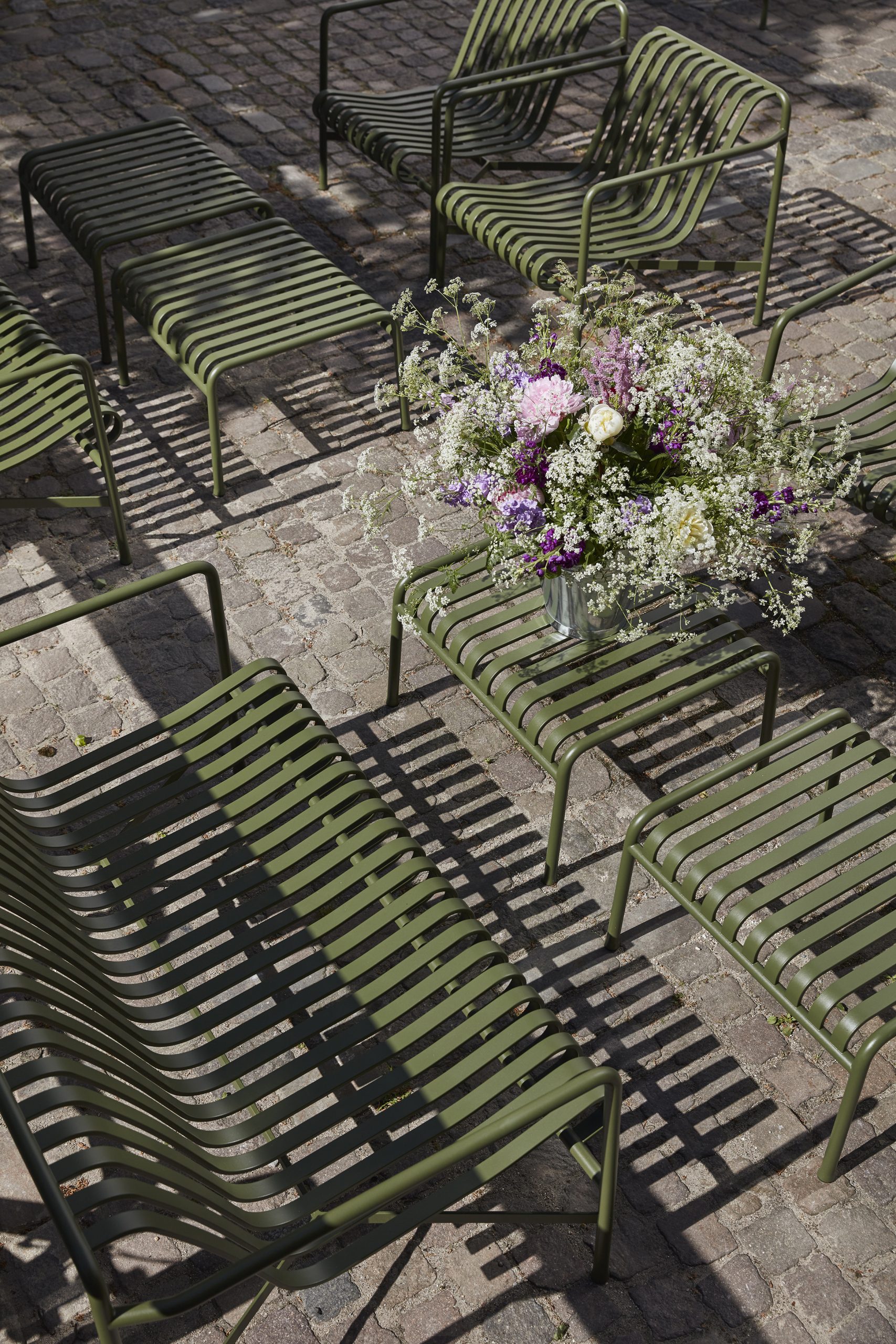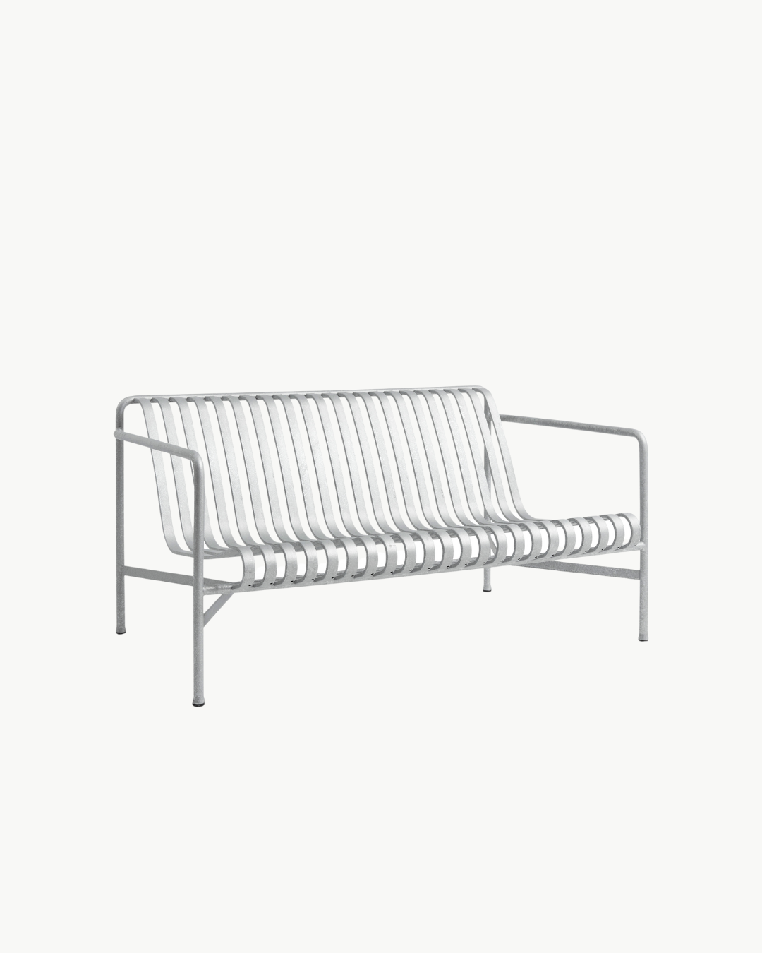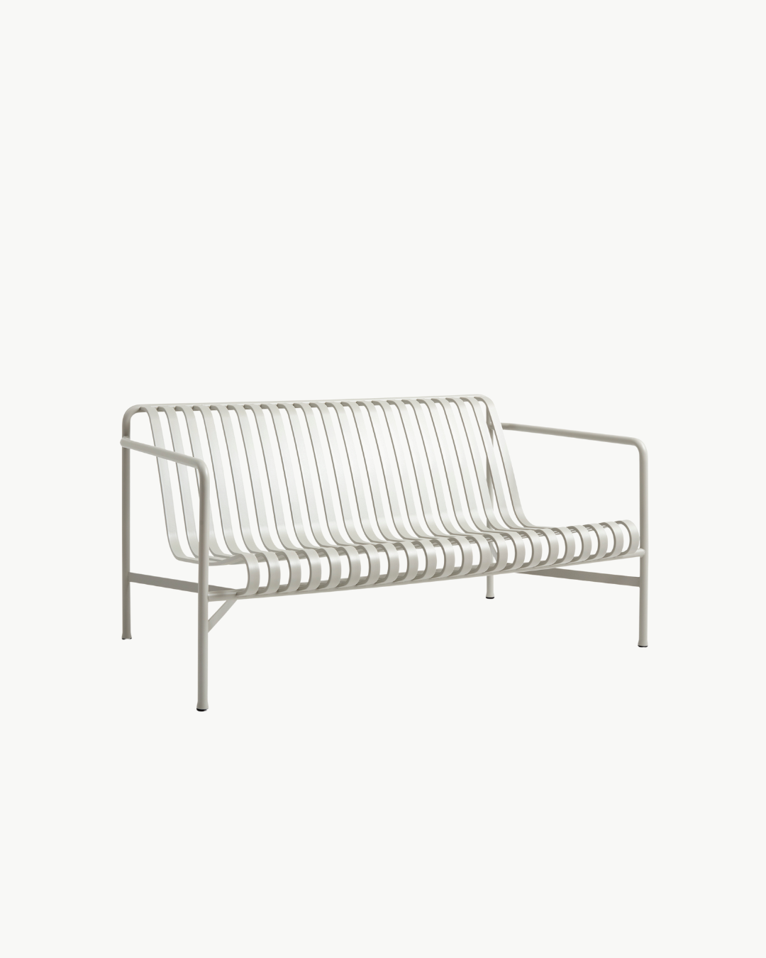 Palissade Lounge Sofa er en stilren og slitesterk utesofa fra den ikoniske Palissade-serien designet av Ronan & Erwan Bouroullec for HAY. Sofaen kombinerer robust konstruksjon med et lett og grafisk uttrykk som passer naturlig inn i både private og offentlige uterom.