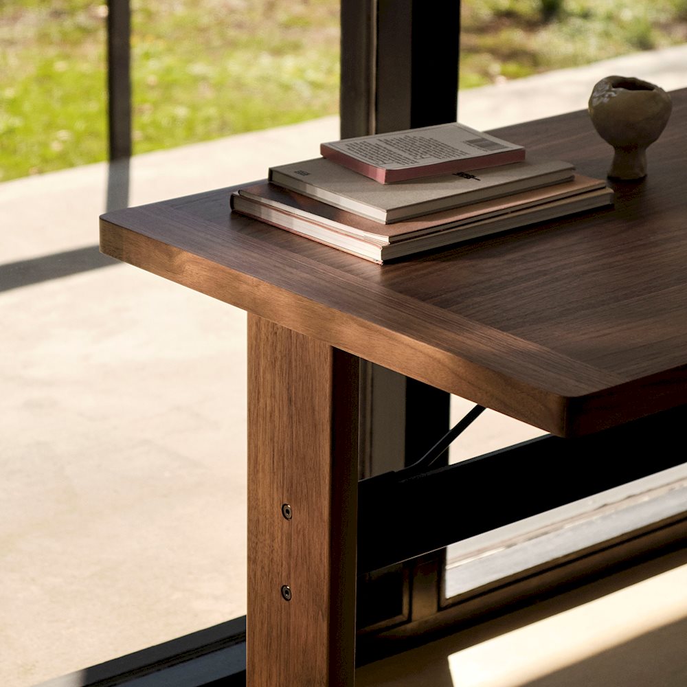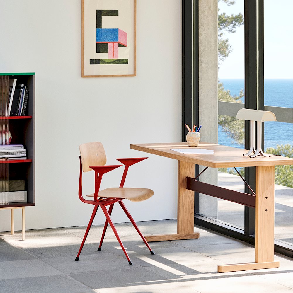 Inspirert av den ryddige estetikken til klassiske Shaker-møbler, designet de franske designerne Ronan og Erwan Bouroullec Passerelle Desk – en oppdatert tolkning som deler samme enkelhet og kvalitet i en mer moderne kontekst. Med en velbalansert, flatpakket konstruksjon har bordplaten solide trekanter og toppoverflate i finer, laminat eller linoleum, med kjernen laget av Lisocore® – et avansert, høykvalitetsmateriale som gir stor styrke, men er ekstremt lett. og lett å flytte rundt på. Under konstruksjonen er like robust og funksjonell, med den solide trerammen og tverrstangen i aluminium og stål plassert like utenfor midten for ekstra stolplass og mobilitet. Passerelle-pultens variasjon av material- og fargealternativer forsterker dens multifunksjonelle kvalitet, noe som gjør den like egnet for bruk som et skrivebord på et hjemmekontor eller et arbeidsområde i et bedriftsmiljø.