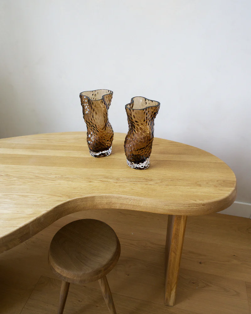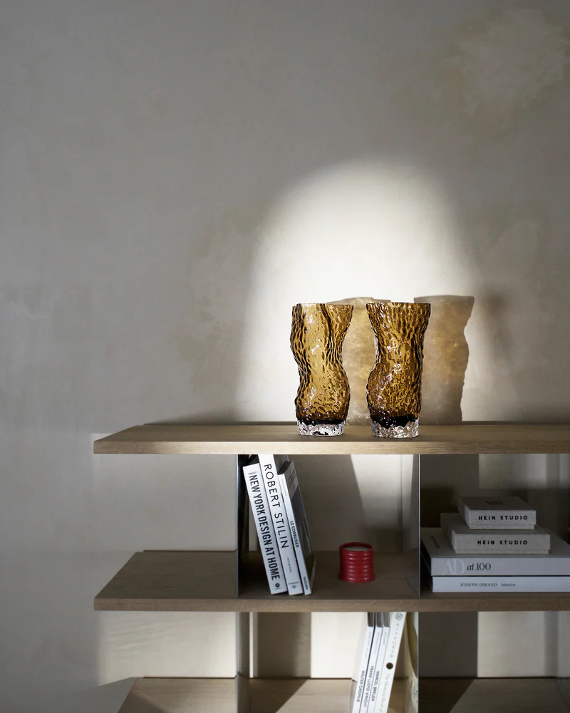 Ostrea Collection ble tegnet på vestkysten i 2015, hver vase er munnblåst, formen er skåret ut for hånd og skaper den unike rå overflaten og fargene.