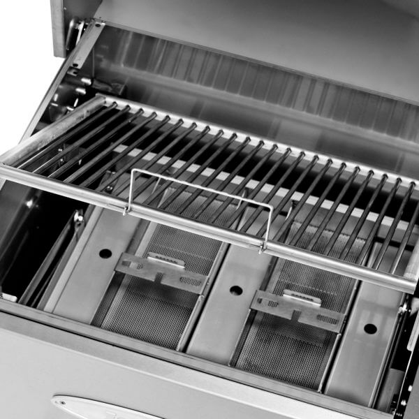 Et risthåndtak brukes til å åpne risten varm eller kald til vertikal låst posisjon. Dette gir tilgang til kullbrettene. Dette gjør det enkelt å legge ekstra trekull, flis eller friske frukttregreiner på toppen av de brennende kullene. Risten løftes enkelt ut av grillen med risthåndtaket.