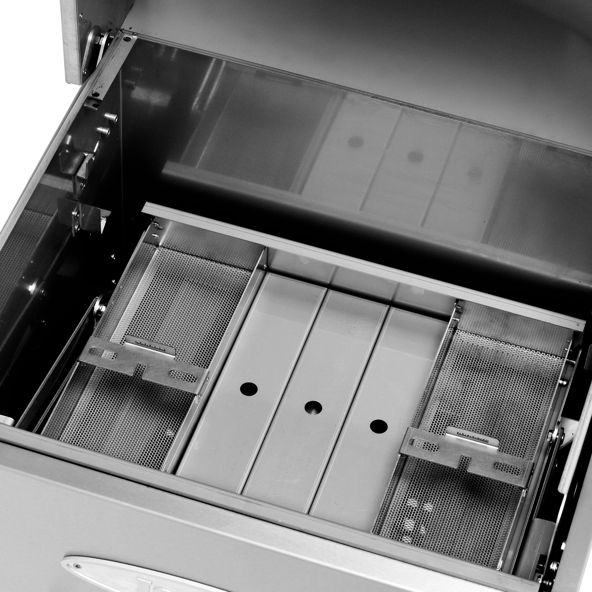 Grillene er utstyrt med et høyytende industritermometer for å håndtere den ekstreme temperaturen som grillene kan nå. Termometeret er laget i SS304 (A2).