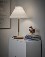Bordlampen Model 328 kombinerer klassisk Le Klint-design med moderne detaljer. Lampen er laget i enten lys eller røkt eik, og har elegante messingdetaljer som gir foten et subtilt, men moderne uttrykk.