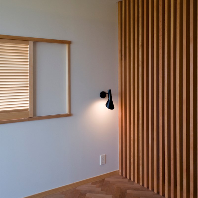 Arne Jacobsens vegglampe sender ut et direkte nedadrettet lys. Vinkelen og rotasjonsretningen på skjermen kan justeres for å optimalisere lysfordelingen. Skjermen er malt hvit på innsiden for å gi et mykt og komfortabelt lys.