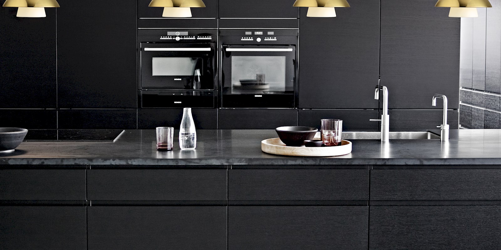 Skjermer: Trukket aluminium eller trukket messing. Oppheng: Preget aluminium.