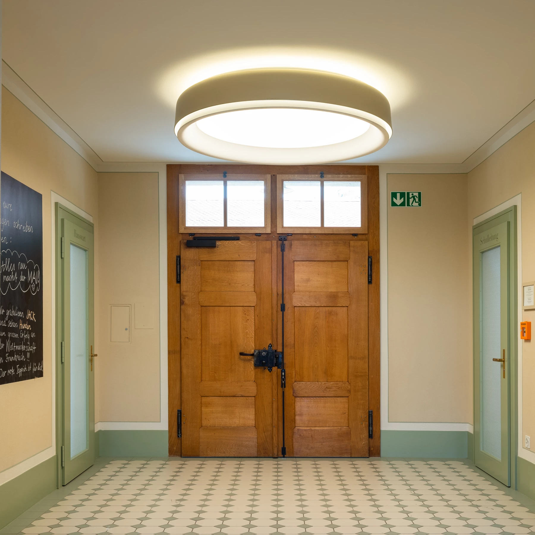 Den runde armaturen oppfattes som et sett av sammenfallende ringer basert rundt en sentralt plassert, horisontal diffuser. En bredvinklet reflektor omkretser diffuseren og reduserer kontrasten rundt kanten. En dreid toppreflektor er perfekt buet for å fordele opplyse i en vid vinkel. En skjerm som er farget på utsiden omslutter reflektoren og skaper innvendige lysreflekser som resulterer i en elegant lysglød på utsiden av øvre og nedre reflektor. Til sammen skaper det fire ringer av lys rundt den sentrale diffuseren.