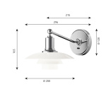Lyskilde Lyskilde 1x20W E14 Annen informasjonMateriale: Skjermer i munnblåst, hvitt opalt glass samt arm og veggboks i høyglanset krombelagt messing. For fastkobling. Bryter: På veggboks. |