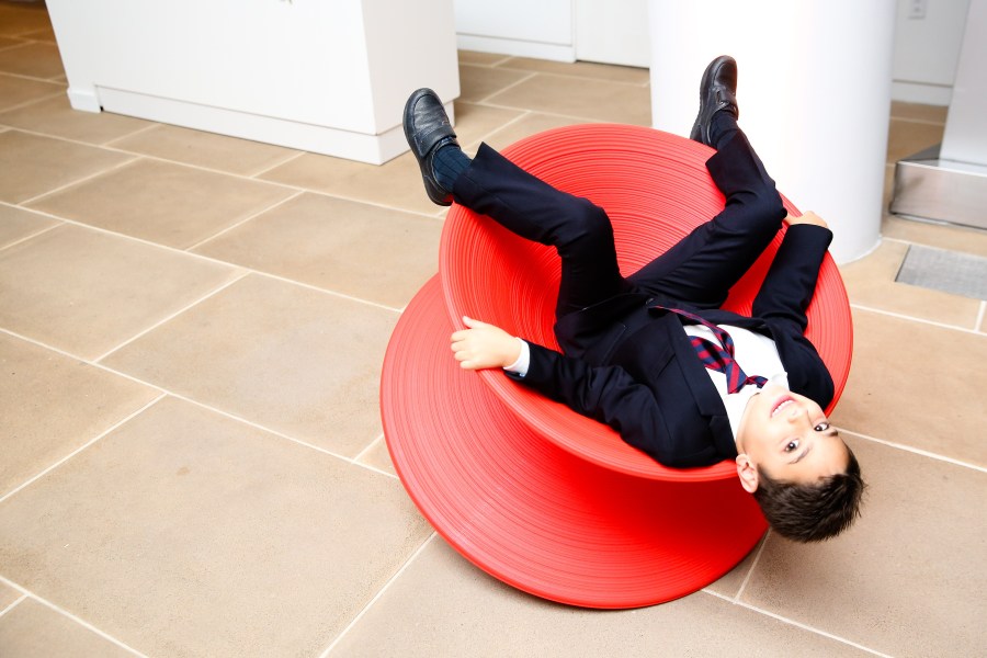 En spennende moderne skulptur når det er fortsatt, blir Spun et komfortabelt, morsomt sete når det beveger seg, et sete hvor vi kan oppleve nye opplevelser, gjenoppdage gleden av å rocke, slå 360 ° og leke med verden rundt oss.