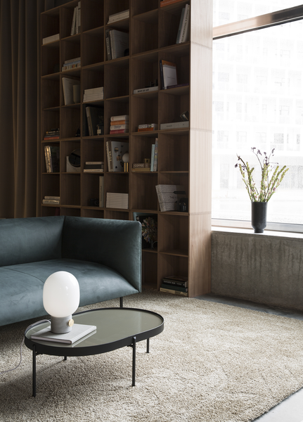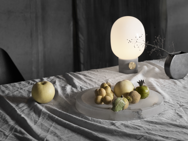 Kjerne materialer som Betong og Messing blir forvandlet til en vakker lampe av den Stockholm baserte designeren Jonas Wagnell. Inspirert av tradisjonelle oljelamper, bringer han disse materialene sammen slik at det blir både rått og delikat på samme tid. Passer både på et nattbord, på et skrivebord eller på et kaffebord.