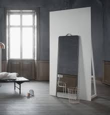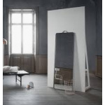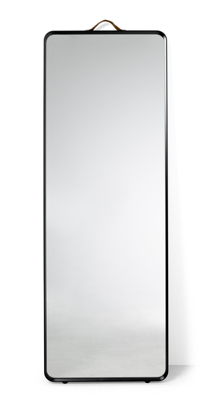 Norm gulvspeil fra Menu, formgitt av Norm Architects. Innred baderommet ditt med et fint speil med vakre detaljer. Len det mot veggen eller heng det opp med hjelp av et håndtak i brunt skinn. Rammen rundt speilet er svart pulverlakkert aluminium.
