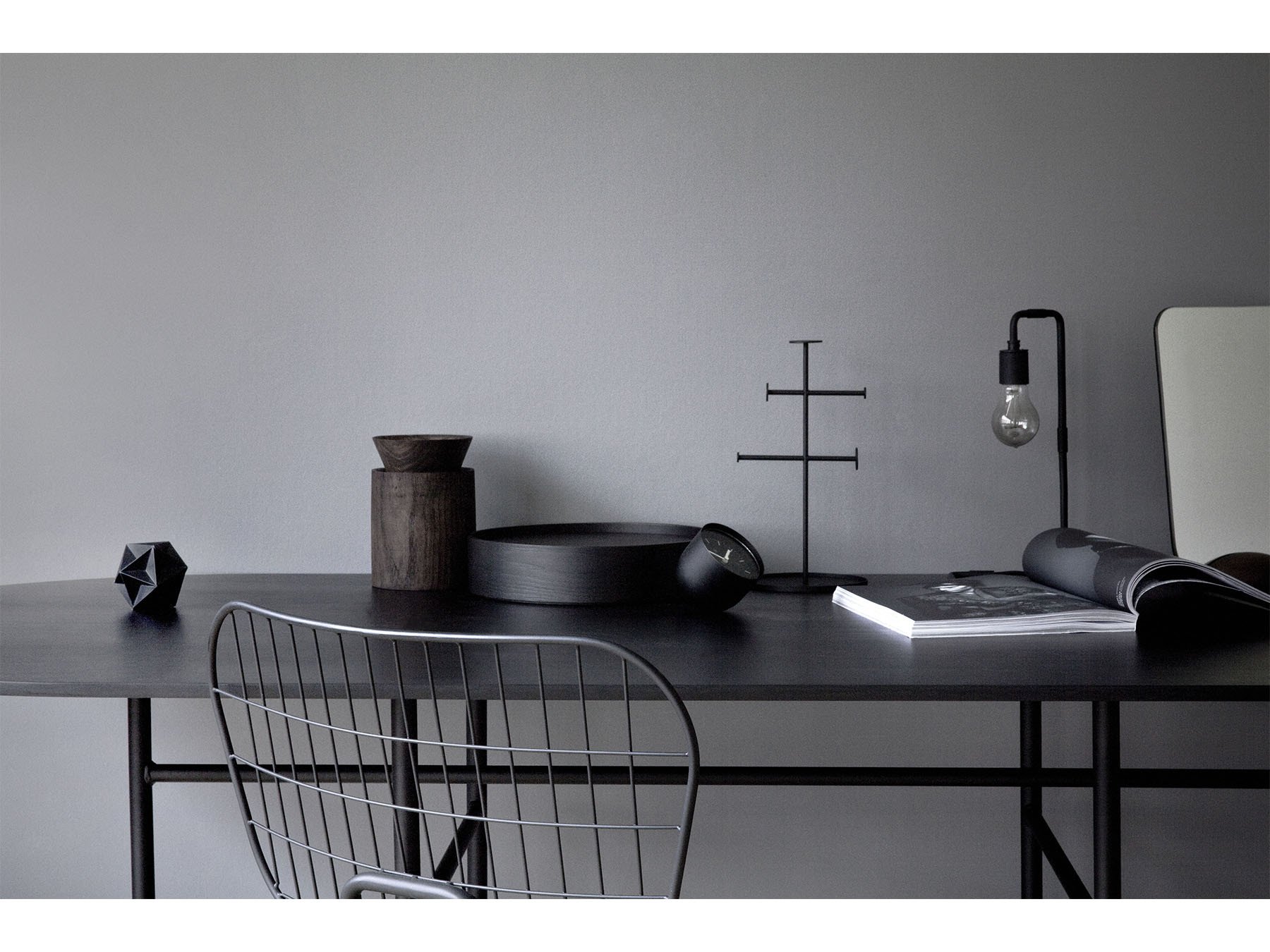 Snaregade Rectangular bord fra Menu. Dette fantastiske bordet gir et lett og lekent inntrykk. Det har plass til mange middagsgjester og byr inn til lange herlige middager. Bordplaten er produsert i lakkert finér og bena i pulverlakkert stål.