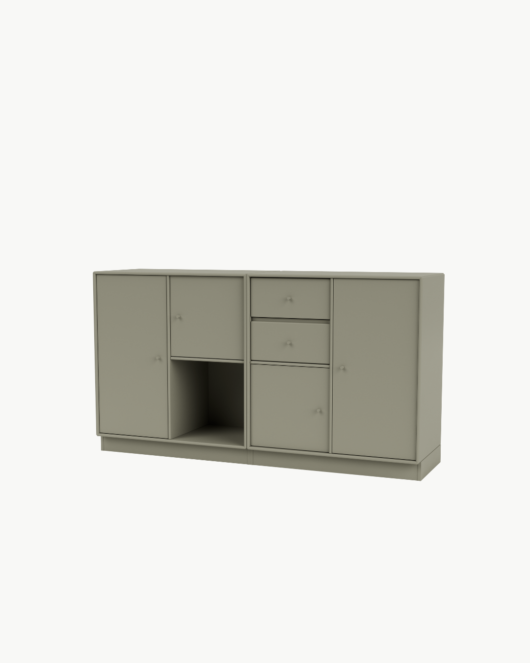 COUPLE er en moderne skjenk som kombinerer åpen og lukket oppbevaring på elegant vis. Den passer perfekt i stue, gang eller kjøkken, og gir deg mulighet til både å vise frem og skjule eiendeler. Skjenken består av to romslige skuffer, én åpen hylle og flere skap i ulike størrelser – en kreativ og fleksibel oppbevaringsløsning.