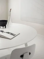 Dette runde JW-bordet har et rent og klassisk uttrykk som skaper symmetri og myker opp de firkantede formene i interiøret. Bordet har en diameter på 160 cm og en ergonomisk høyde på 74 cm. Den allsidige designen gjør det ideelt til mange bruksområder, som spisebord og kantinebord.