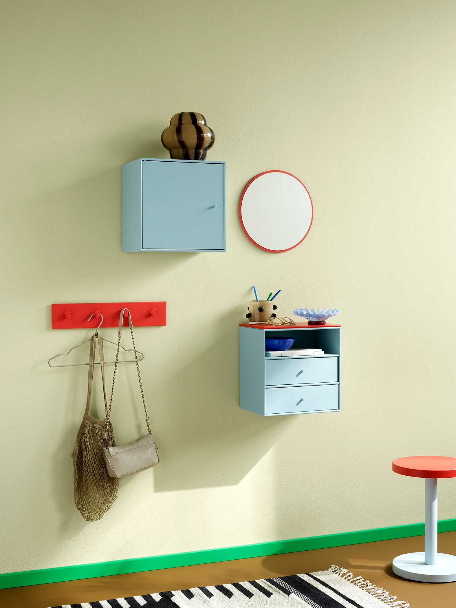 Det lille, runde Montana Mini-speilet er en stilig detalj som tilfører både funksjon og personlighet til hjemmet. Speilet leveres i de 10 lakkfargene som kjennetegner Montana Mini-serien, noe som gjør det enkelt å skape en helhetlig og fargerik innredning.