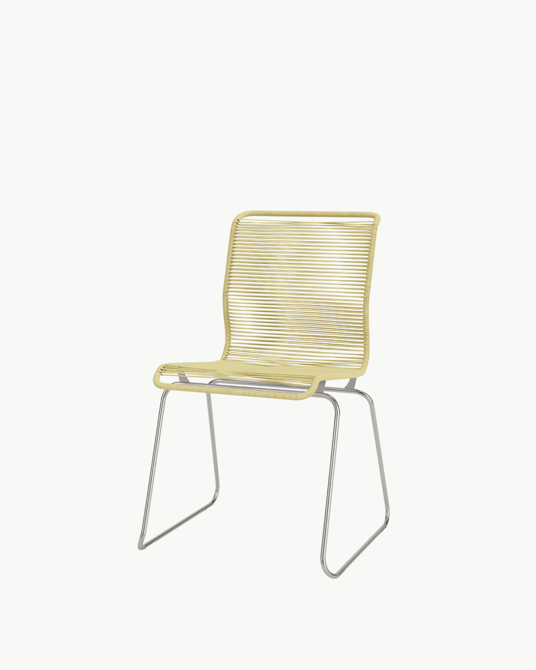 Versjoner med rustfritt stål kan brukes både inne og ute, mens setet i papirsnor kun egner seg til innendørs bruk.