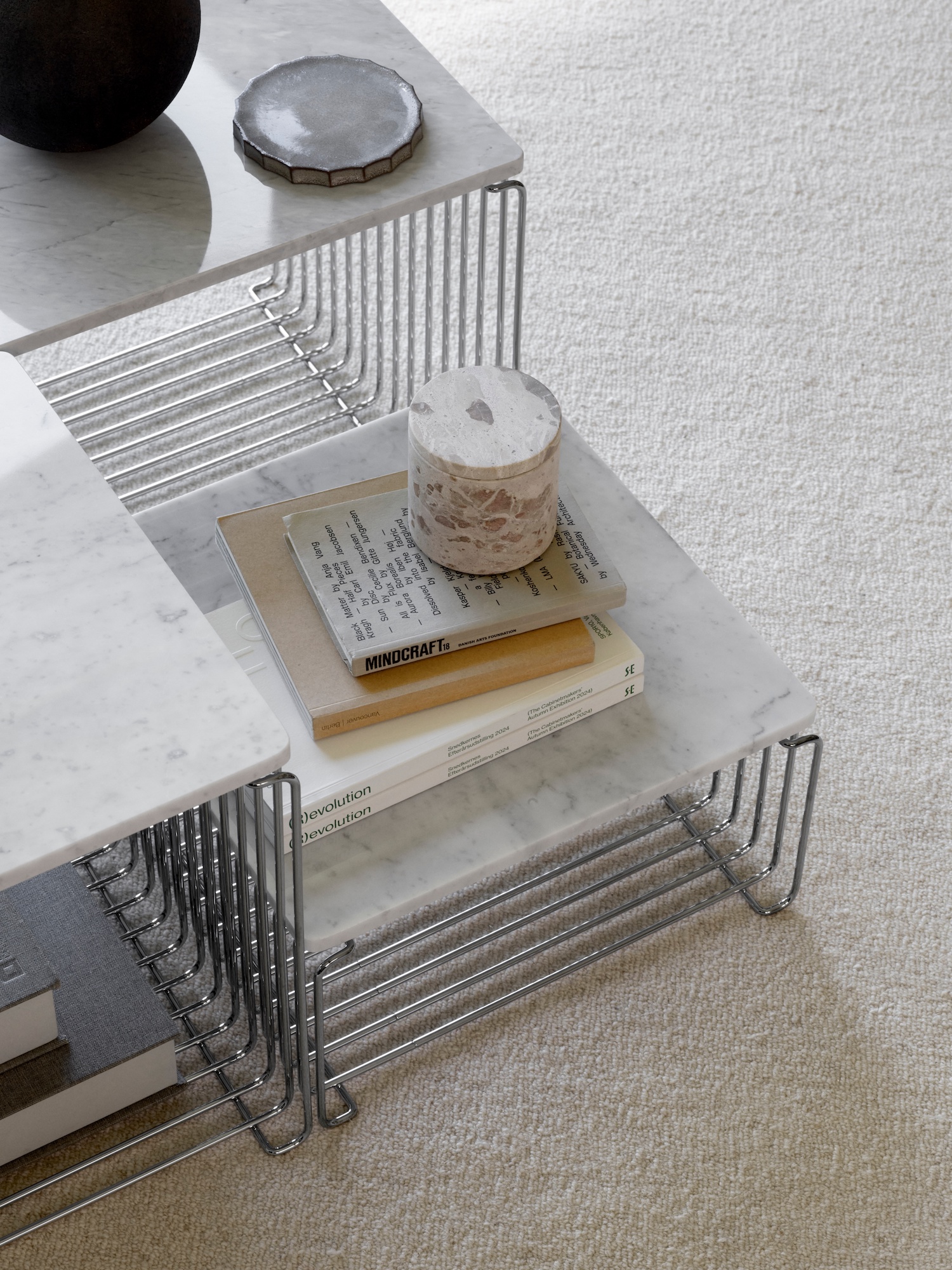 Den doble toppplaten er designet for å passe til to Panton Wire Single-moduler eller én Panton Wire Extended-modul, og gir deg muligheten til å forvandle Panton Wire-hyllene til en elegant overflate eller et stilfullt sofabord/sidebord.